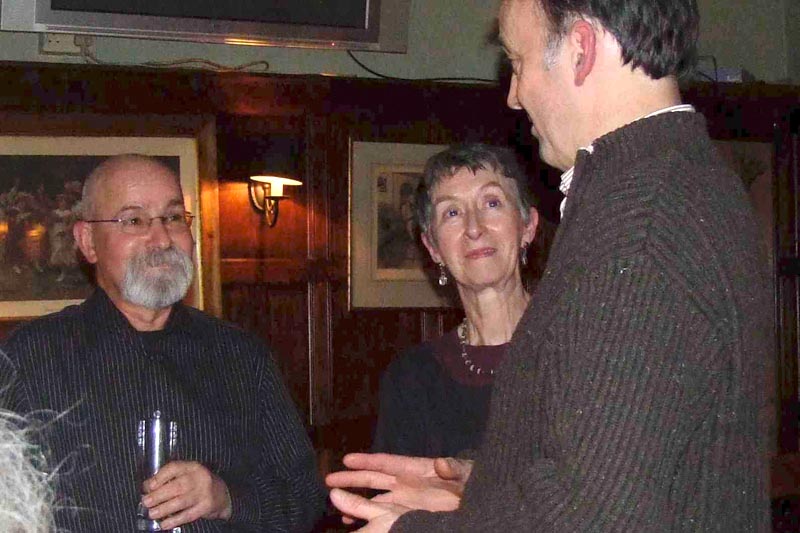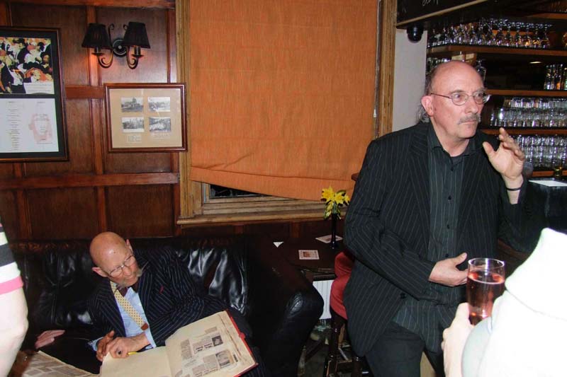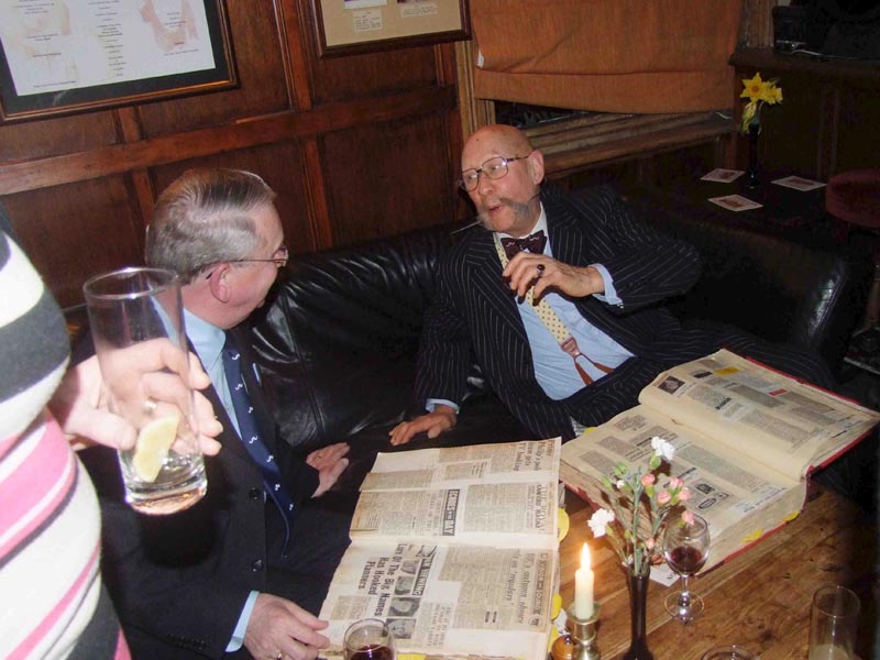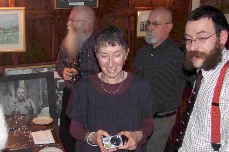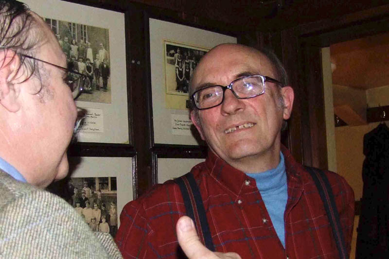 After a look round the engine sheds, a visit to the shop and the small pub/café on the station, we set off on the steam train to Horsted Keynes. The sounds and smell of bygone travel were a joy to behold. At the end of our journey it was time to return to the Griffin Inn to meet up with Jimmy’s family again. We had a private room for our ‘Posthumous Birthday Party’ and Jimmy’s nephews, twin brothers Roy and Jim Pennington and their partners Katie and Net had brought along some of their archives and photos for us to see. We presented the family with one of the new Handlebar Club shields to add to their collection.