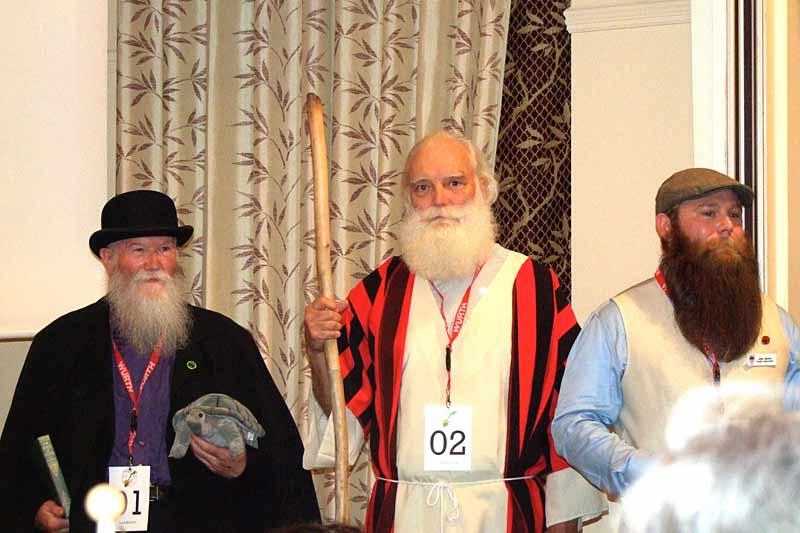 The day’s wandering was followed by an excellent pubby dinner consisting of a handcrafted burger in the ‘Irish Pub’ over the road from the hotel, with David Dade and John, of the British Beard Club. We met a young English fellow Jonny Elphinstone, who is studying in Norway and works in the pub. Hearing six months ago that the championship was coming to the nearby hotel, he started growing a moustache. He entered he competition and joined us on Tuesday’s parade. He’s the impossibly young gent in cap and waistcoat on the left of the group photograph, below.